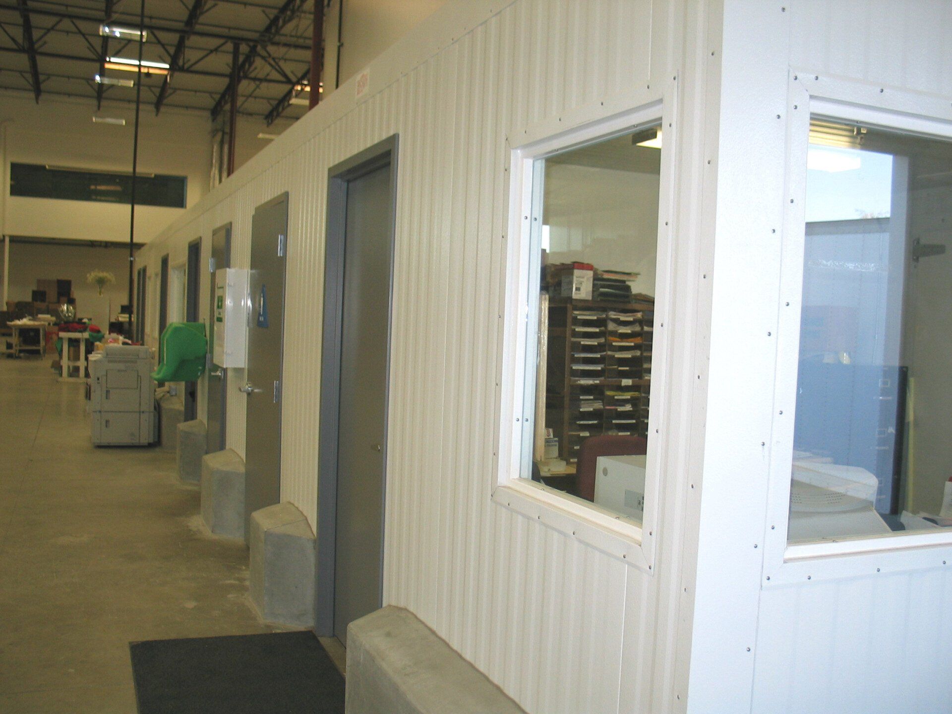 The warehouse offices and testing rooms were constructed with panels to match the coolers and will provide years of durable service.