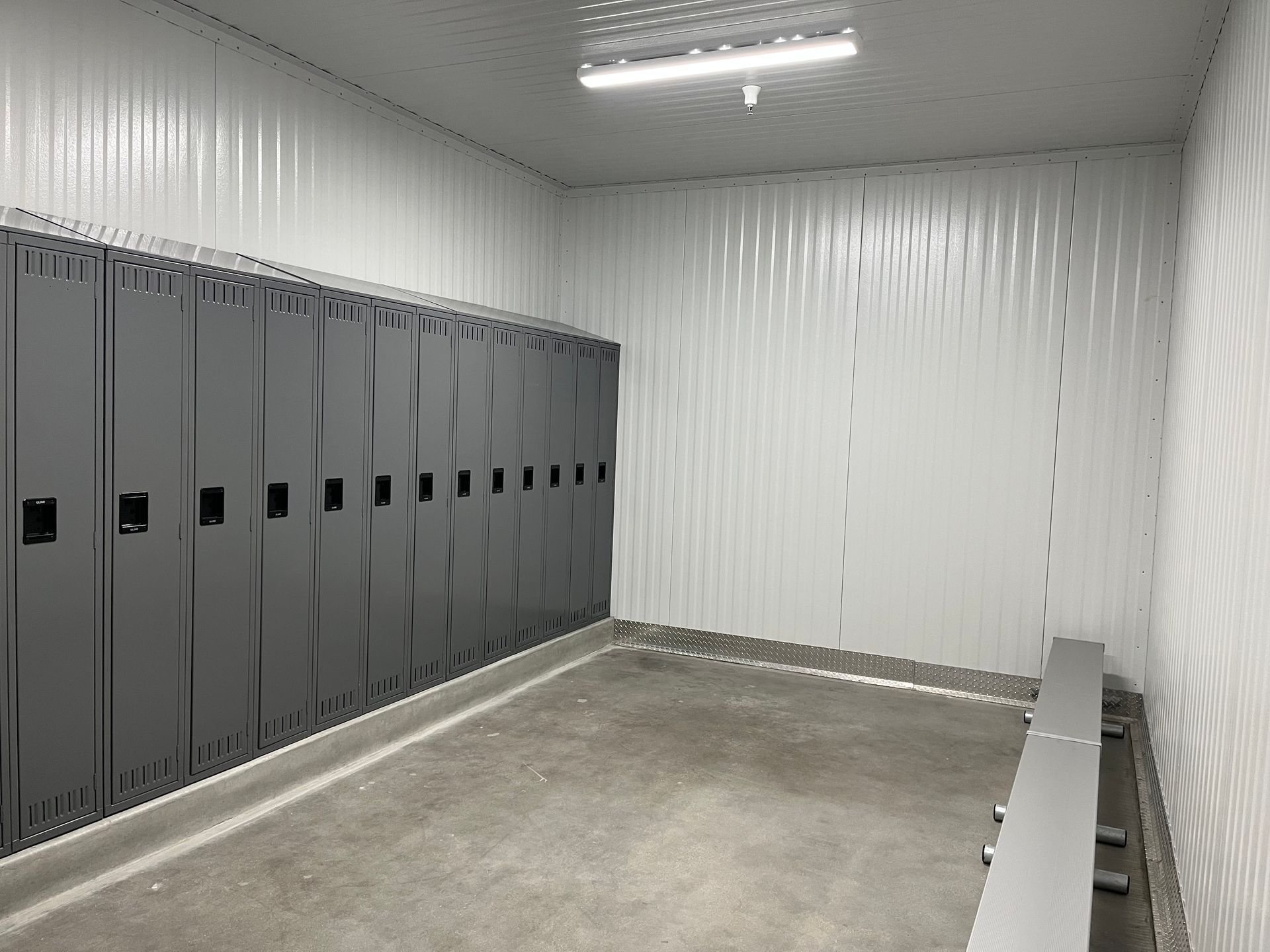 The offices were completely gutted and rebuilt with a modern TI layout. The warehouse was fully insulated and converted into a conditioned space designed for mixed goods. Concrete was removed and sloped to install new floor drains for a fully washable process room.